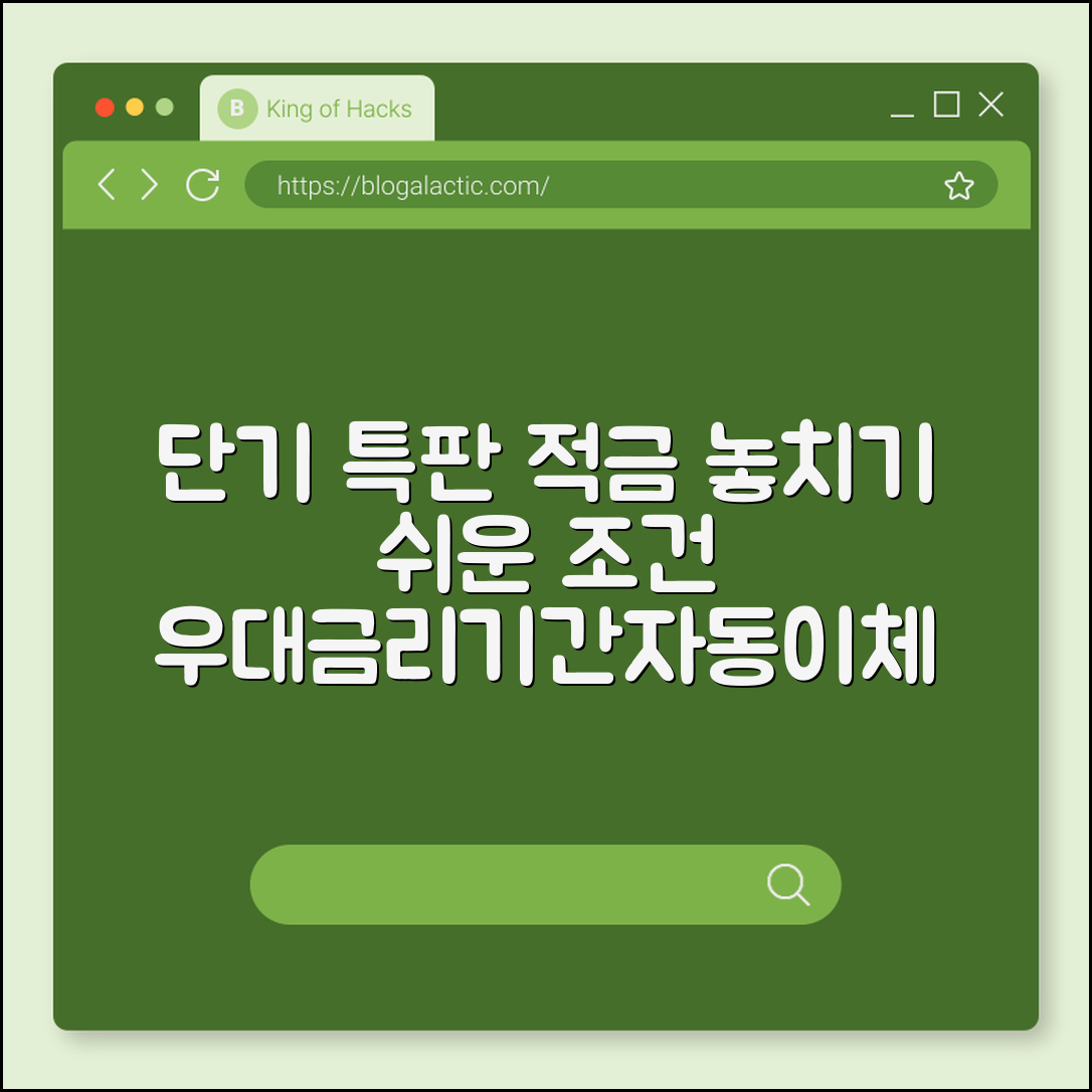 단기 특판 적금을 가입하려는데 우대금리 조건, 적금 기간, 자동이체 설정 같은 중요한 부분을 놓치고 있진 않으신가요? 사실 이런 세세한 조건들이 적금의 실질적인 수익을 좌우하는 경우가 많아, 처음 가입할 때 제대로 체크하지 않으면 기대만큼 혜택을 누리기 어려울 수 있답니다. 이 글을 통해 단기 특판 적금 가입 시 흔히 간과하기 쉬운 조건들을 꼼꼼히 살펴보고, 똑똑하게 가입하는 꿀팁까지 함께 알려드릴게요!