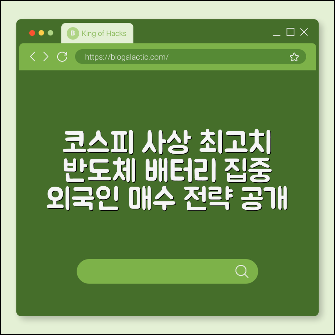 코스피가 사상 최고치를 기록한 지금, 어디에 투자해야 할지 고민되고 계신가요? 반도체와 배터리 같은 핵심 업종은 물론, 외국인의 수급 상황까지 꼼꼼히 살펴야 하는 시점이죠. 이번 글에서는 최신 시장 트렌드와 함께 코스피 사상 최고치 이후 효과적인 매수전략을 쉽게 풀어드릴게요. 이 글을 통해 안정적이면서도 수익을 기대할 수 있는 투자 방향을 잡아보세요!