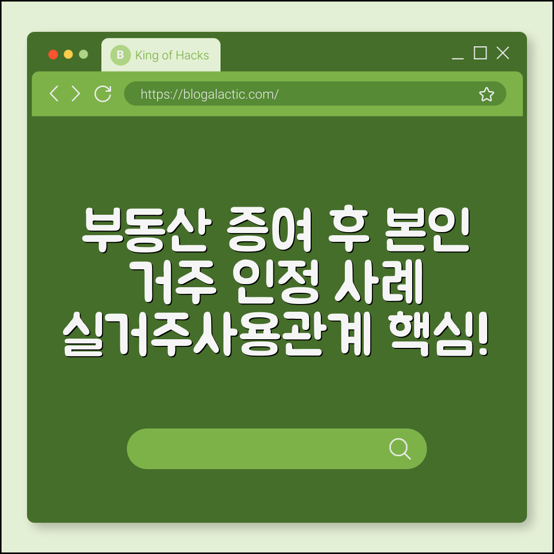 부동산 증여 후 본인거주로 간주되려면 실거주와 사용관계 증명이 중요합니다. 특히, 법적 분쟁을 피하기 위해 다음 세 가지 방법으로 사용관계를 입증할 수 있습니다.
