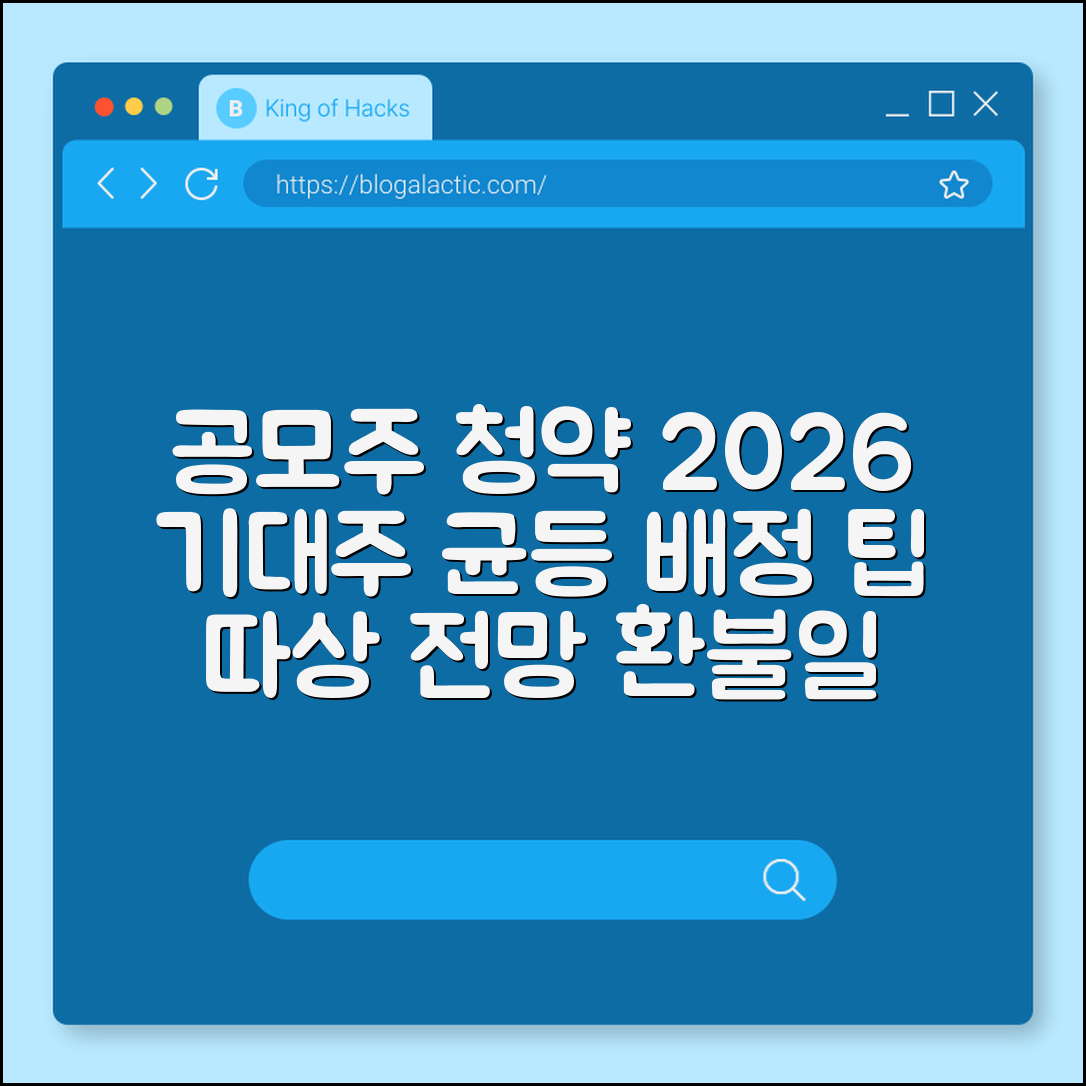 2026년 1월, 공모주 청약 준비는 잘 하고 계신가요? 증권사 계좌 개설부터 따상 전망, 환불일까지 꼼꼼히 챙겨야 하는데, 막상 시작하려면 어디서부터 손을 대야 할지 막막한 분들 많으실 거예요. 이 글에서는 2026년 1월 기대주와 균등 배정 노하우는 물론, 청약 일정별 핵심 팁까지 한눈에 정리해 드립니다. 읽고 나면 공모주 청약의 모든 과정이 한결 수월해질 거예요!